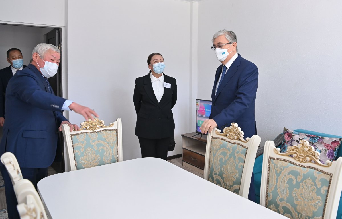 Затем Касым-Жомарту Токаеву показали новые полностью меблированные квартиры, на возведение которых из республиканского бюджета было выделено 2,3 млрд тенге. Первый дом был завершен в мае. Многоквартирные дома сданы в чистовой отделке, подведены все инженерные коммуникации.