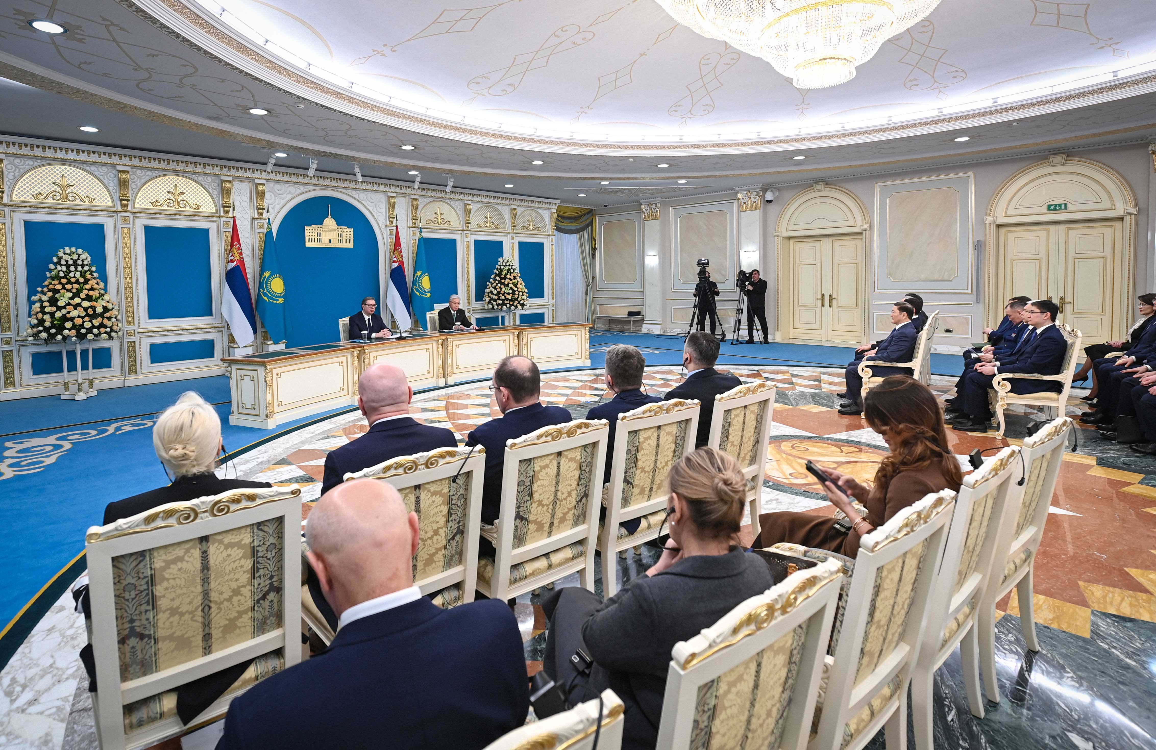 – Сербия – Қазақстанның Балқан түбегіндегі маңызды әрі сенімді серіктесі. Берік достық, өзара қолдау және ортақ мүдде елдеріміздің ынтымақтастығына арқау болып отыр. Мен екі жыл бұрын Белградқа жасаған сапарымды ыстық ықыласпен еске аламын. Сол кездегі келісімдердің табысты жүзеге асырылып жатқанын ерекше ризашылықпен атап өткім келеді. Биыл екі мемлекеттің дипломатиялық қатынас орнатқанына 30 жыл толады. Президент Александр Вучичтің сапары осы мерейлі межеге тұспа-тұс келіп отыр. Осы уақыт ішінде Қазақстан мен Сербия арасында барлық деңгейде өзара сенімді арқау еткен саяси диалог орнады. Нақты шарттық-құқықтық негіз қалыптасты. Үкіметтеріміз нәтижелі жұмыс істеп, Парламентаралық байланыс нығайып келеді. Сауда-экономика және инвестиция саласындағы ынтымақтастық күшейді. Мәдени-гуманитарлық бағытта айтарлықтай табысқа қол жеткіздік. Халықаралық ұйымдар аясындағы ықпалдастығымыз тереңдей түсті, – деді Қазақстан Президенті.