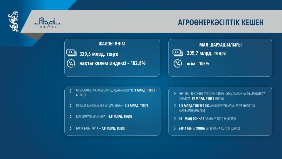 О социально-экономическом развитии области Абай